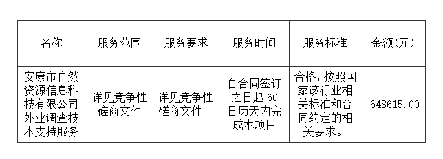 關于安康市自然資源信息科技有限公司外業(yè)調查技術支持服務的采購結果公告